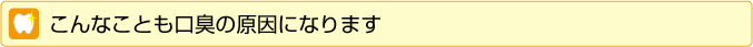 その他、お口に起因するものとしては、「みがき残し」「むし歯の放置」「不衛生な入れ歯」「残った食べかすの腐敗」などがあります。これらはいずれも
